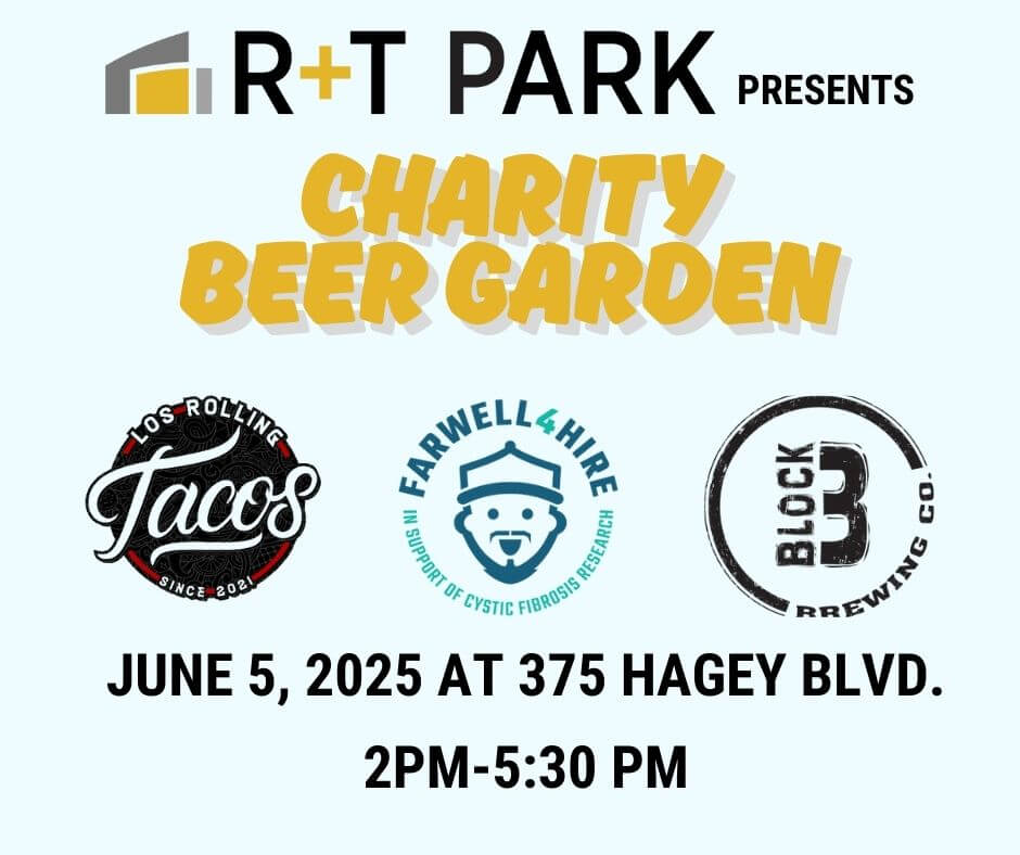 Summer’s almost here, and we’re kicking it off the right way—with great beer, community spirit, and a mission that matters. On June 5, R+T Park is teaming up with Block 3 Brewing and Mike Farwell to bring you the first pop-up beer garden of the season in support of the Farwell4Hire campaign, raising money for cystic fibrosis research.