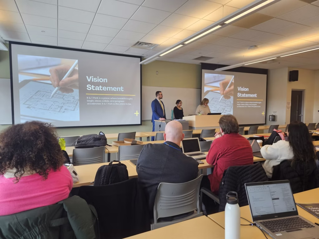 To anticipate the future needs of R+T Park, a Strategic Planning initiative is being implemented. This work is headed by Mike Pereira, the Director of Real Estate and R+T Park, and alumni of the Master of Economic Development and Innovation program. When Pereira approached Associate Professor Heather Hall to become involved in creating R+T Park’s future vision, she identified an opportunity to engage her current students with an applied, timely project that could serve as the foundation for her policy and practice class.